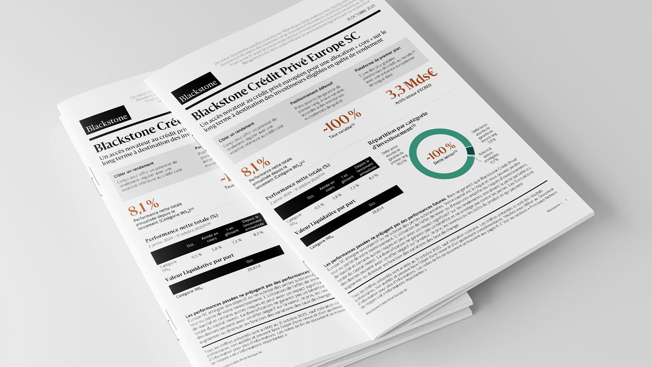 Le Fonds s’appuie sur la plateforme de Blackstone Credit & Insurance, gérant plus de 430 milliards d’euros, et disposant de plus de 20 ans d’expérience à travers les cycles de marché.